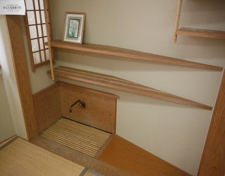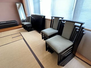 15畳の広さの和室のお部屋です。会議や話し合いでの利用はもちろん、調理実習室に隣接しており、試食室としての利用もできます。また、茶道教室としても利用ができるように、炉、水屋を設けています。
