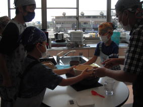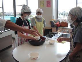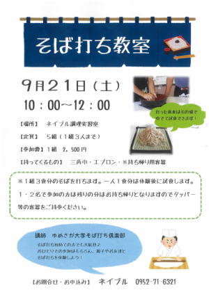 ゆめさが大学そば打ち倶楽部の皆さんにご協力をいただき、参加者の皆さんにそば打ちにチャレンジしていただきます。