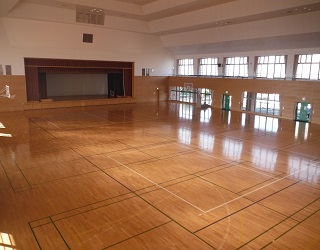 床面積2,226㎡で、各種公式競技規則に対応。バスケットゴールコート2面、バレーボールコート2面、バドミントンコートなら8面が設営可能。